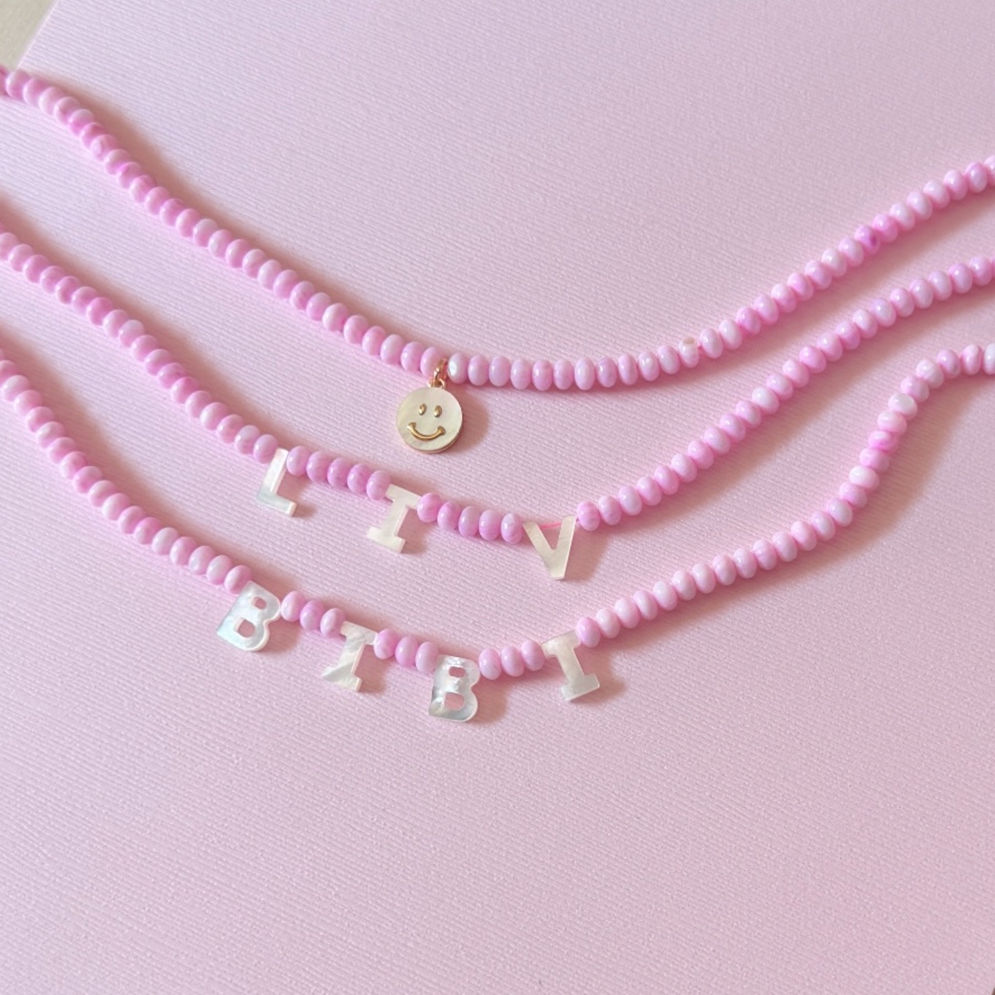 Soft pink opals and dainty pearl letter beads come together to create pure magic. Strung with 3mm Bubble Gum Opal beads in the dreamiest pink hue, this necklace adds just the right sparkle to your little one’s everyday style. Finished with sweet pearl letter charms, it’s as special as they are—personalized with their name to make it uniquely theirs.